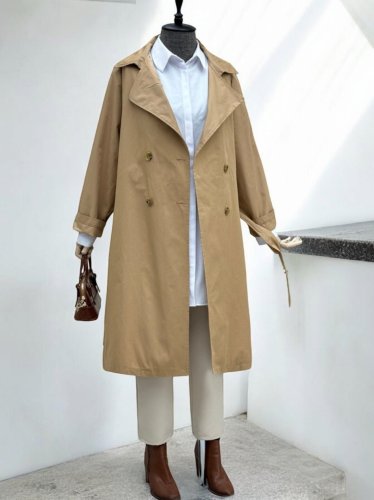Bolero Detaylı Kemerli Araboy Trençkot -Vizon