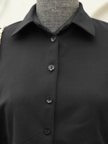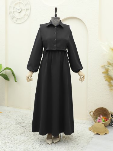 Üstü Gömlek Detaylı Elbise Takım -Siyah