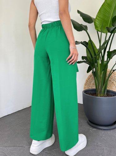Beli Bağcıklı Double Bol Paça Pantolon -İlkbahar Yeşili