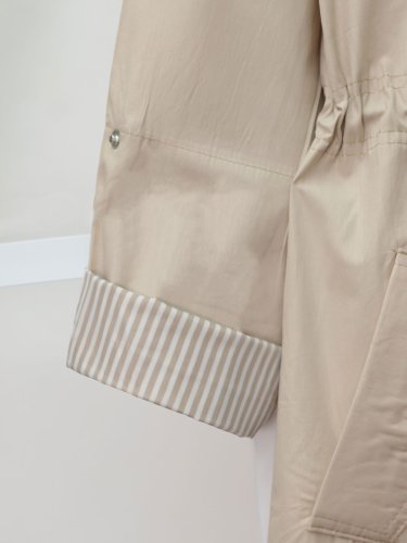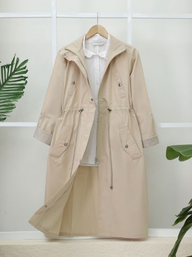 Tünel Bağcıklı Üst Cep Detaylı Astarsız Yıkamalı Organik Koton Trenckot -Taş
