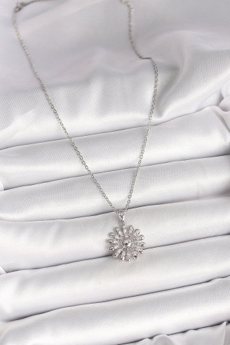 316L Çelik Gümüş Renk Zincir Zirkon Taşlı Güneş Model Kadın Kolye