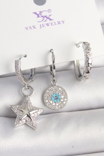 Pirinç Gold Renk Zirkon Taşlı Yıldız Model Nazar Boncuk Detay 3Lü Kadın Kombin Küpe