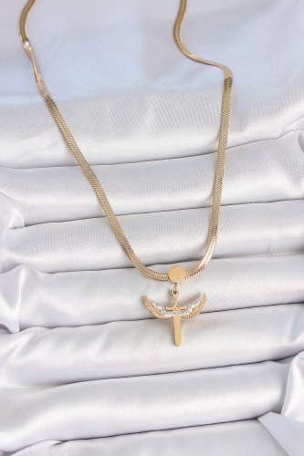 316L Çelik Gold Renk İtalyan Zincir Zirkon Taş Detaylı Mikail Model Kadın Kolye