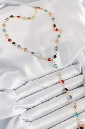 Pirinç Asorti Model Gold Renk Zirkon Taşlı Y Kolye