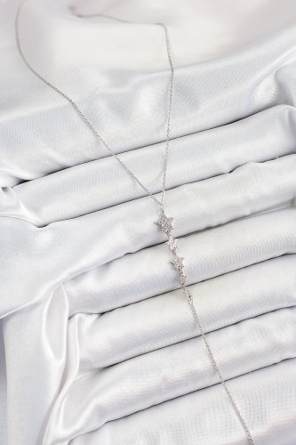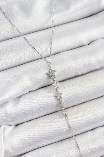 Pirinç Zirkon Taşlı Sıralı Yıldız Figürlü Y Model Gümüş Renk Kadın Kolye