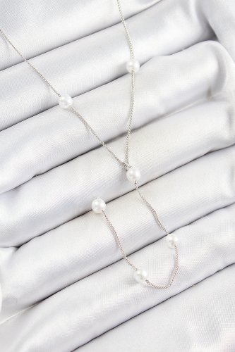 Pirinç İnci Figürlü Y Model Gümüş Renk Kadın Kolye