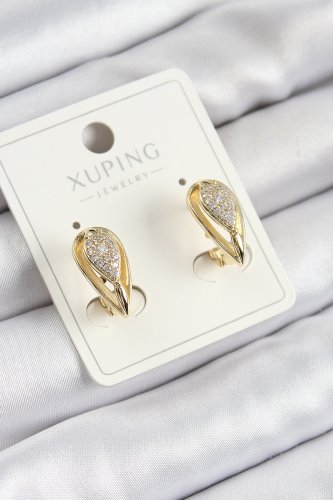 Xuping Zirkon Taşlı Damla Model Gold Renk Kadın Küpe
