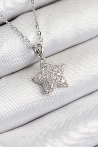 316L Çelik Zirkon Taşlı Yıldız Model Gümüş Renk Kadın Kolye