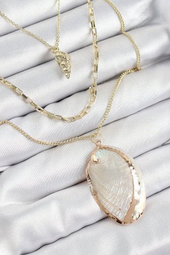 Pirinç Çoklu Zincirli İstiridye Model Gold Renk Kadın Kolye