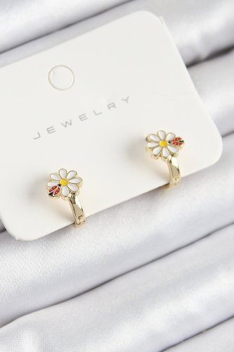 Pirinç Papatya Model Gold Renk Çocuk Küpe
