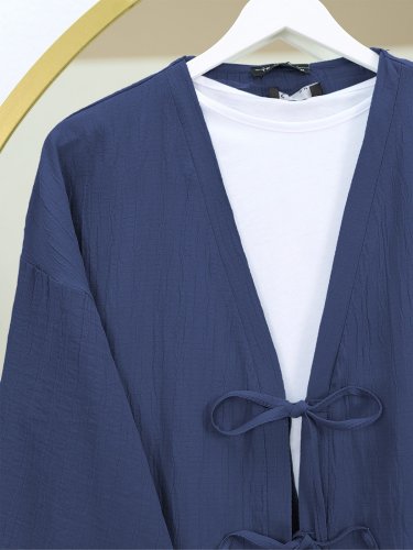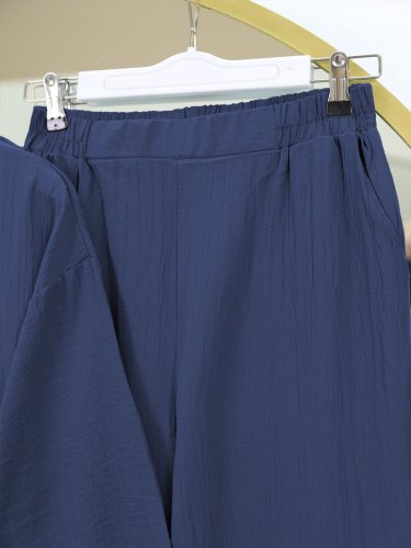 Önü Çift Bağcıklı Pantolonlu Krınkıl Takım -İndigo