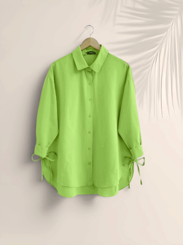 Yanları Bağcıklı Arkası Uzun Gömlek -F.Yeşili
