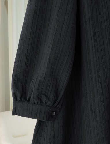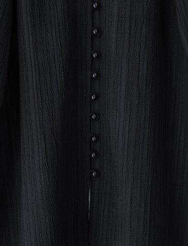 Top Düğmeli V Yaka Krinkıl Gömlek -Siyah