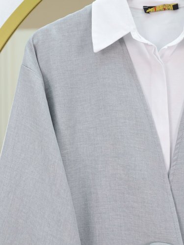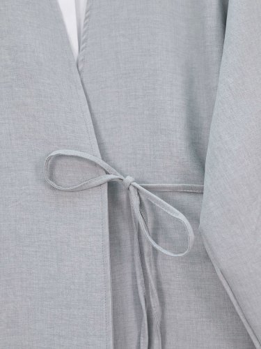 Önden Bağlamalı Pantolonlu Kimono Takım -Açık Gri