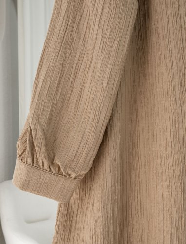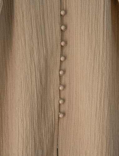 Top Düğmeli V Yaka Krinkıl Gömlek -Vizon