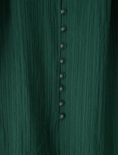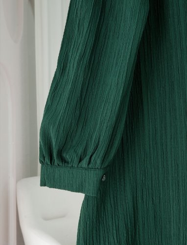 Top Düğmeli V Yaka Krinkıl Gömlek -Zümrüt