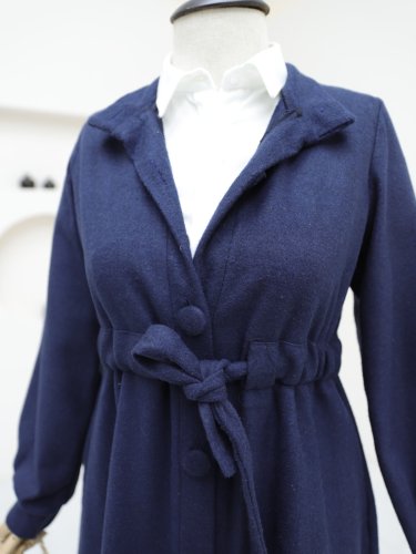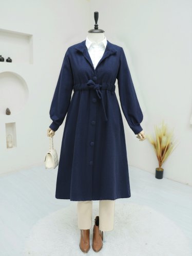 Hakim Yaka Tünel Bağcıklı Kaşe Kaban -Laci