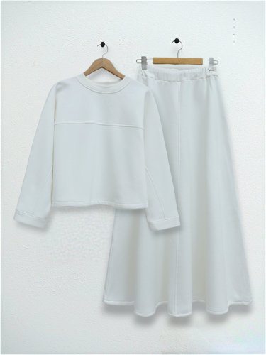 Üç İplik Şardonlu Etekli Takım -Ekru