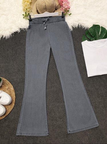 İspanyol Paça Bağcık Detaylı Kot Pantolon -Açık Gri