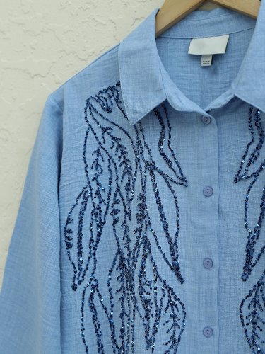Pul Payet İşlemeli Düğmeli Gömlek -Bebe Mavi