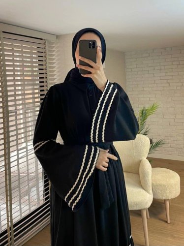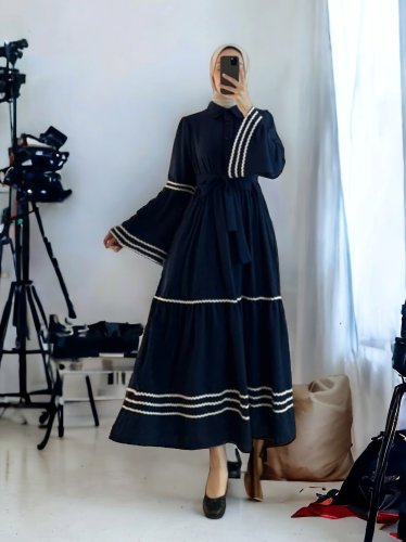 Kolları ve eteği süzene işlemeli Parçalı Elbise -Laci