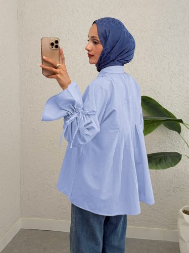 Kolu Büzgülü Arkası Piliseli Gömlek -Bebe Mavi