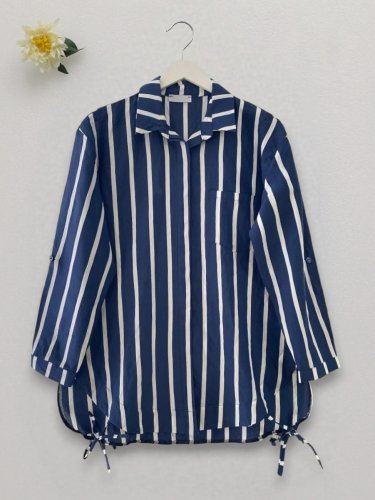 Yandan Bağlamalı Cepli Çizgili Gömlek -Laci