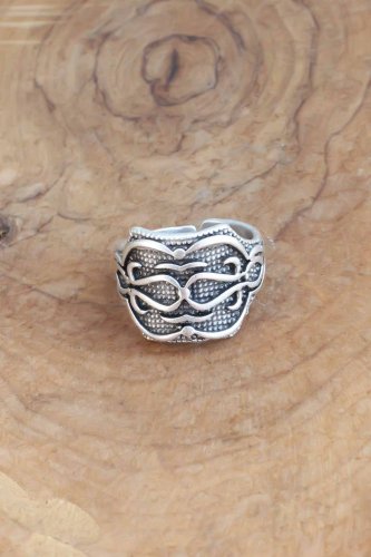 Motifli Gümüş Renk Ayarlanabilir Erkek Yüzük