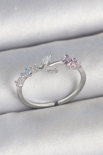 Pirinç Gümüş Renk Zirkon Taşlı Çiçek Model Ayarlanabilir Kadın Yüzük