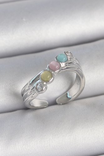 Pirinç Gümüş Renk Zirkon Taş Detaylı Renkli Mineli Ayarlanabilir Kadın Yüzük