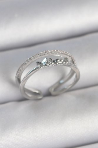 Pirinç Gümüş Renk 2Li Zirkon Taş Detaylı Kelebek Figür Ayarlanabilir Model Kadın Yüzük