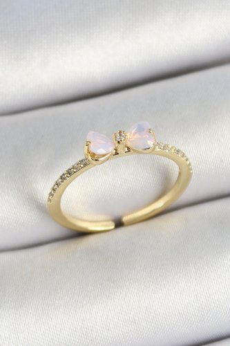 Pirinç Fiyonk Figürlü Zirkon Taşlı Gold Renk Ayarlanabilir Kadın Yüzük