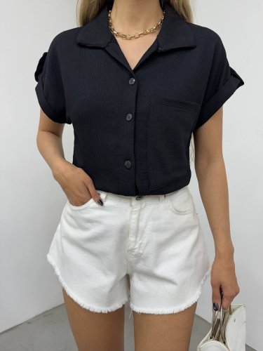 Duble Kol Tek Cepli Bürümcük Gömlek -Siyah