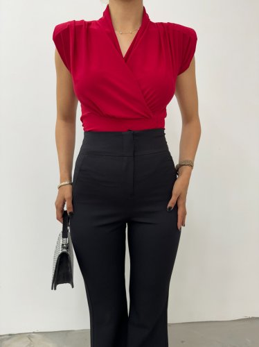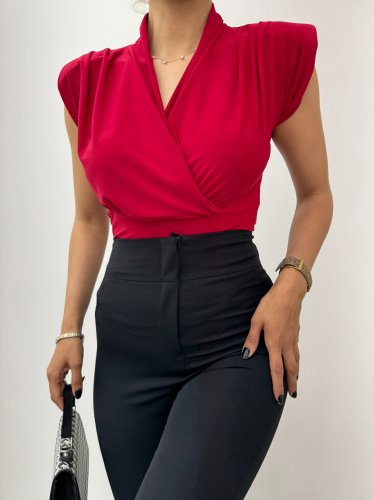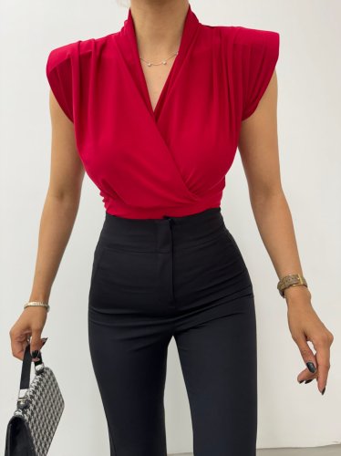 Sıfır Kol Vatkalı Kruvaze Model Sandy Bluz -Bordo
