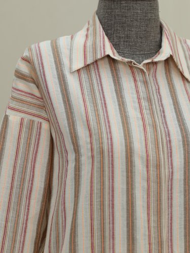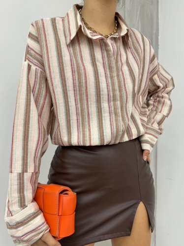 Kabartma Çizgili Tek Cepli Oversize Gömlek -Kahve