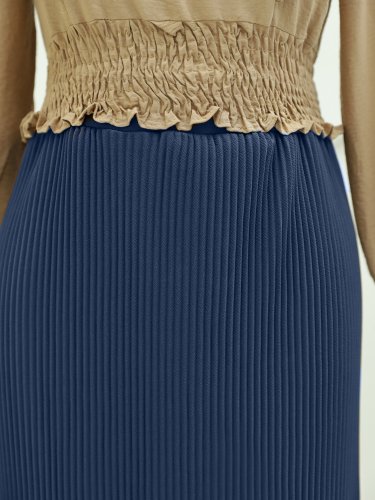 Beli Lastikli Pliseli Kalem Etek -İndigo