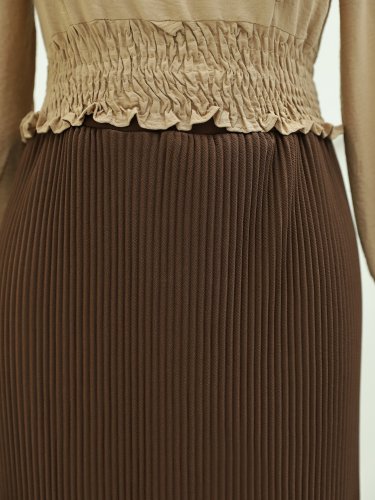 Beli Lastikli Pliseli Kalem Etek -Kahve