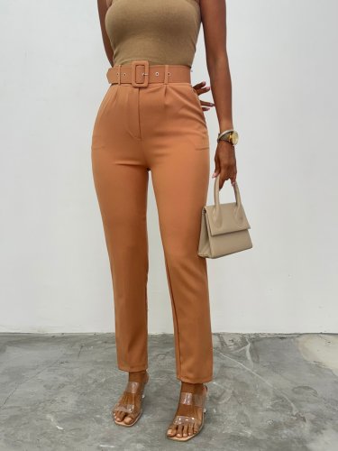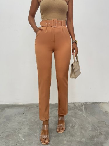 Kalın Kemerli Kumaş Pantalon -Tarçın