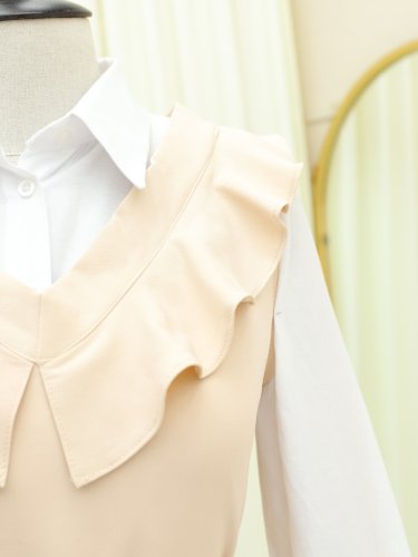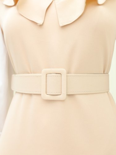 Yakası V Kemerli Uzun Jile Elbise -Krem