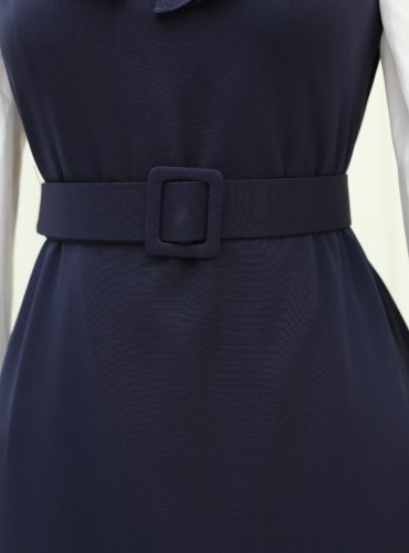 Yakası V Kemerli Uzun Jile Elbise -KLaci