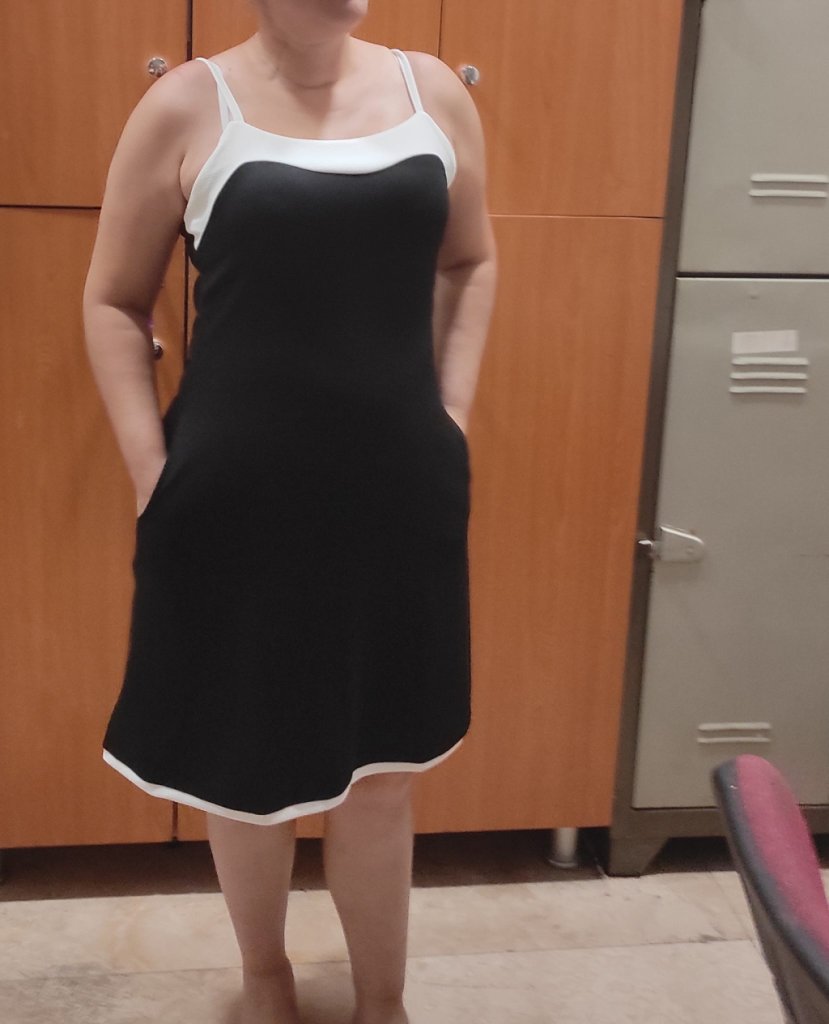 Kadın ip askılı geniş v yakalı çift renkli janjan krep elbise