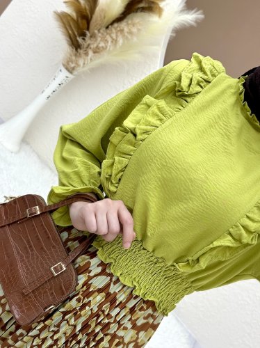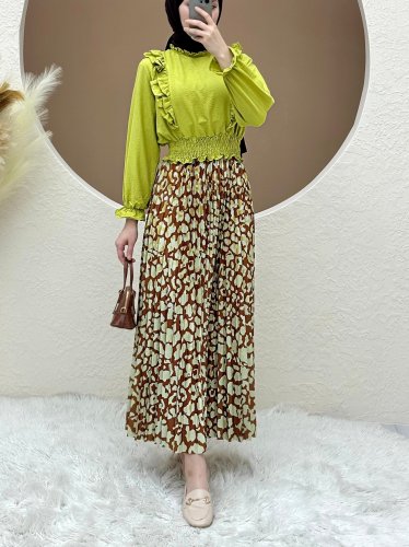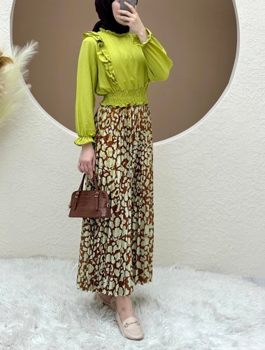 Dijital Baskılı Pliseli Etek -Taba