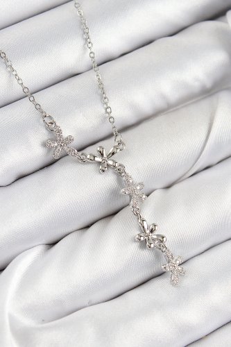 316L Çelik Zirkon Taşlı Çiçek Model Gümüş Renk Kadın Kolye