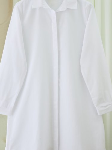 Gizli Düğmeli Oval Kesim Uzun Gömlek -Beyaz