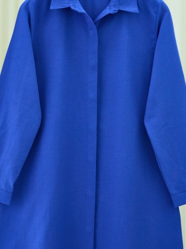 Gizli Düğmeli Oval Kesim Uzun Gömlek -Saks