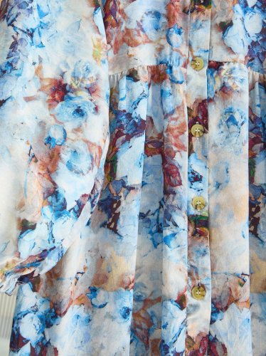 Yarım Düğmeli Karışık Desenli Kolu Lastikli Elbise -Buz Mavi