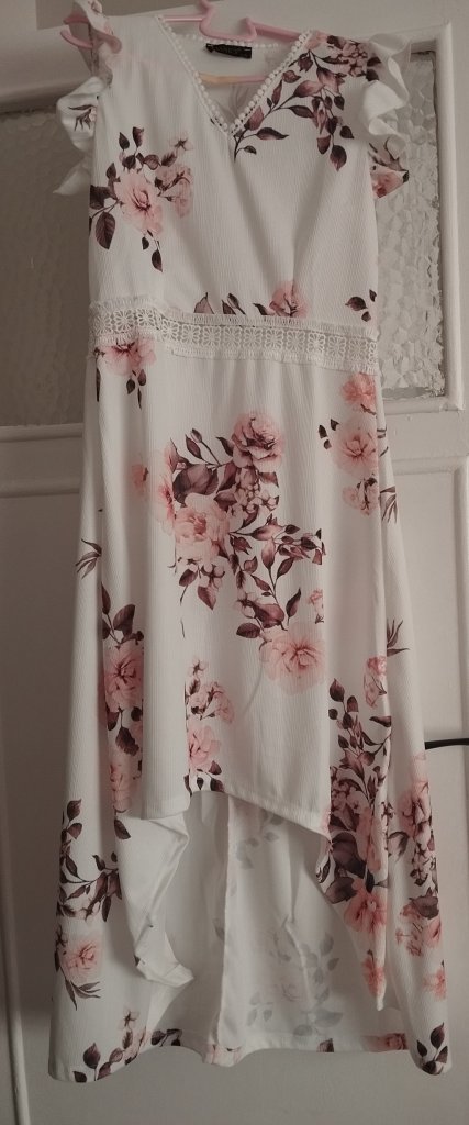 Kadın kısa kollu v yakalı çiçek desenli önü kısa arkası uzun pegasus elbise
