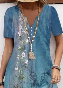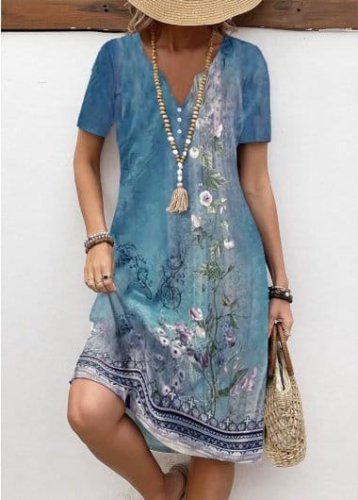 Kadın kısa kollu v yakalı desenli süprem elbise
