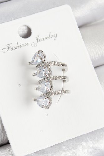 Pirinç Zirkon Taşlı Damla Model Gümüş Renk Sağ Kıkırdak Küpe