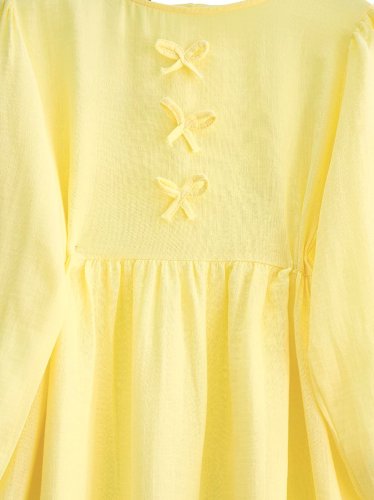 Önü Fiyonk Detaylı Kolları Lastikli Müslin Elbise -Sarı